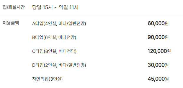 - C타입 8인실, 바다전망: 120,000원
