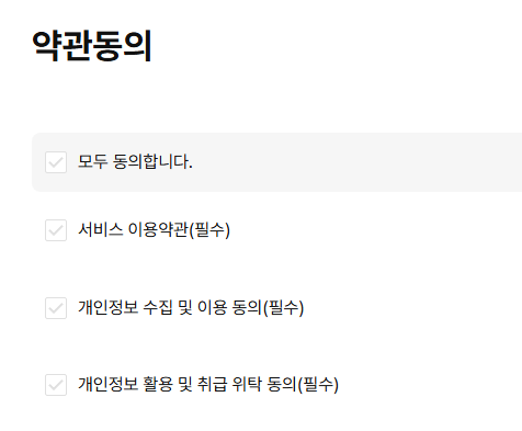 3. 약관 동의: 약관에 동의하라고 나와요. '모두 동의합니다.'를 눌러서 동의를 진행합니다.