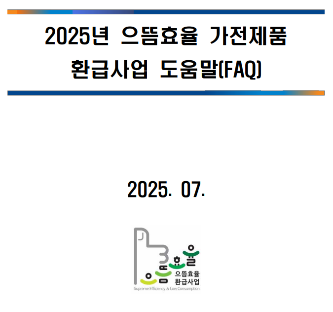 □ 한국에너지공단은 지난 7월 정부가 발표한 내수진작과 고효율 가전제품 보급 확대를 위한 “으뜸효율 가전제품 환급사업”을 2025.7.4일부터 시행합니다. 관련하여 세부사항을 아래와