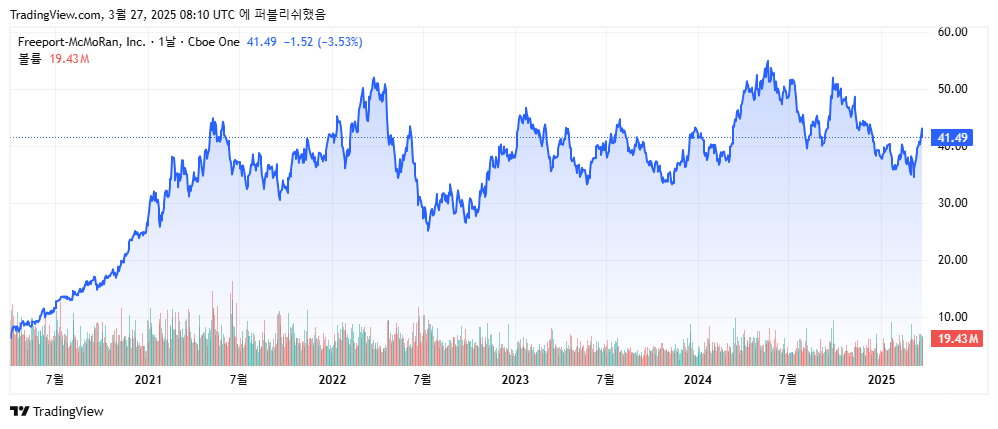 - 트럼프의 관세 정책으로 수입 구리 가격이 오르면, 미국 내에서 생산하는 FCX의 경쟁력이 더 높아집니다.