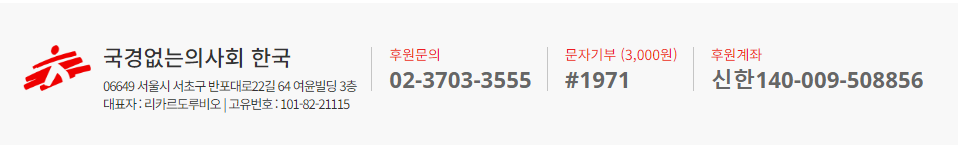 제가 꾸준히 기부하고 있는 단체는 국경없는의사회입니다. 이번 중증외상센터 주인공 백강혁 교수도 국경없는의사회에서 활동한 의사라고 소개되고 있죠? 이 국경없는의사회는 세계 곳곳에서 엄청난 활동을 하고 있는 의사단체에요. 그럼 이곳에 후원하는 방법은 뭘까요?