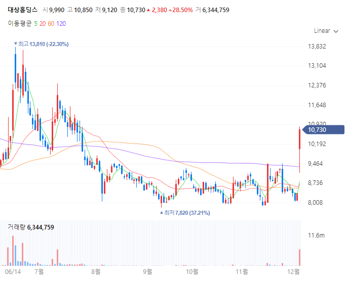 대상홀딩스는 한동훈 장관과의 간접적인 인맥 연결로 인해 관련주로 주목받고 있습니다. 한동훈 장관과 배우 이정재 씨가 친구 사이라는 사실이 알려지면서, 임세령 대상홀딩스 부회장이 2대 주주로 있는 이 회사가 관련주로 부각되었습니다. 대상홀딩스는 식품, 소재, 유통 등 다양한 사업 영역을 가진 기업들을 자회사로 두고 있는 지주회사입니다. 특히 식품 산업에서의 강점을 바탕으로, 한동훈 장관의 정책 방향성 중 하나인 국내 산업 경쟁력 강화와 연관성이 있을 것으로 예상됩니다. 이러한 배경으로 인해 대상홀딩스는 한동훈 관련주로서 투자자들의 관심을 받고 있습니다.