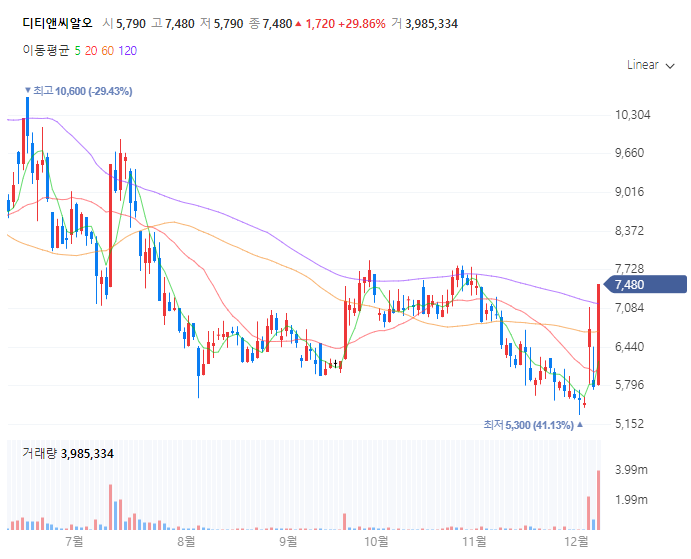 디티앤씨알오는 임상시험 수탁기관(CRO)으로, 한동훈 대표와의 간접적인 연관성으로 주목받고 있는 기업이다. 특히 디티앤씨알오의 이성규 사외이사가 한동훈 대표와 서울대 법대, 컬럼비아 로스쿨 동문이라는 점이 부각되면서 한동훈 테마주로 분류되었다. 이러한 인적 네트워크를 바탕으로 디티앤씨알오가 한동훈 대표의 바이오산업 육성 정책에 따른 수혜를 받을 수 있다는 기대감이 형성되어 있다. 또한 디티앤씨알오의 주요 사업 영역인 임상시험 대행이 한동훈 대표가 강조하는 바이오 헬스케어 산업 육성과 맞물려 있어 정책적 수혜 가능성도 제기되고 있다. 이에 따라 디티앤씨알오의 주가는 한동훈 대표의 정치적 행보에 민감하게 반응하고 있으며, 최근 윤석열 대통령 탄핵 정국과 관련된 한동훈 대표의 발언에 따라 주가가 큰 폭으로 상승하기도 했다.