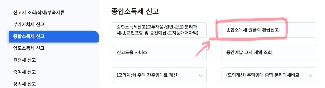2단계: 홈택스 원클릭 환급 메뉴 접속