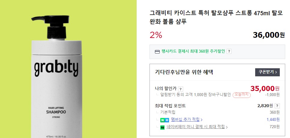 가격이 저렴한 편도 아닙니다. 475ml에 36,000원이면 샴푸치곤 엄청나게 비싼건데 탈모인들의 간절함을 이용하여 이런 돈을 벌 수 있다니 엄청나네요. 세계 시장으로 뻗어나가서 대박이 나길 기원합니다.