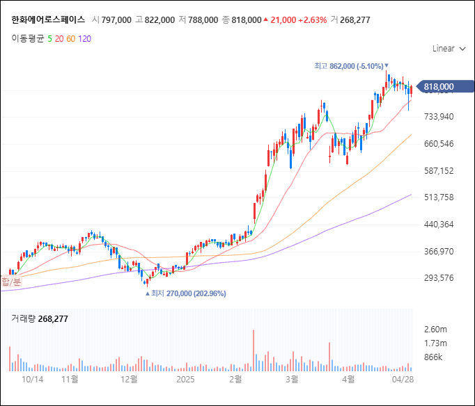 국내 대표 항공·우주·방산 기업으로, 미사일 방어 및 추력 시스템 분야에서 독보적인 기술력을 자랑합니다.