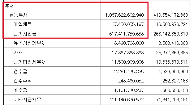 금양의 부채와 현금성 자산을 보면 더 심각함. 현금성 자산은 약 170억 원에 불과함. 이에 반해 1년 안에 갚아야 하는 부채는 6300억 원에 달함. 단기차입금만 6174억 원임. 말 다했지.