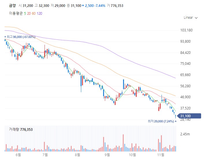 - 24년 11월 18일 월요일 장이 열리면 금양은 지옥행 예정