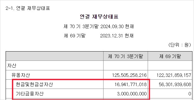 - 현금성 자산 약 170억 원
