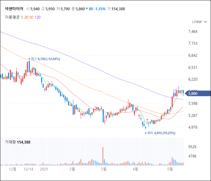 특히, 금호와 겹치는 중형~고급차용 타이어 라인에서 반사이익을 볼 가능성이 있고, 주요 글로벌 완성차 업체들과 협업 중이라 공급 재편 수혜주로도 주목받고 있어요.