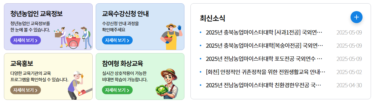 - 최신 농업기술, 정책, 지원사업 등 실무 중심의 커리큘럼
