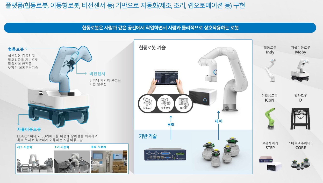 한국 로봇 시장은 매우 작은 시장임. 특히 뉴로메카가 개발 및 판매하고 있는 로봇은 그 수요가 한정적임. 뉴로메카가 주력으로 팔고 있는 로봇은 협동로봇인데 사람의 팔만 구현하는 로봇임. 이 로봇의 사용처는 주로 간단한 조립, 음식, 제조, 물류 등에 쓰임