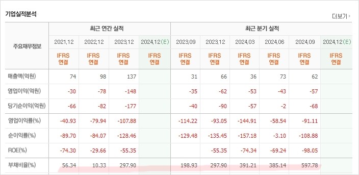 유동성전환사채와 파생금융부채가 유동부채의 거의 대부분임. 이는 전환사채 발행으로 인한 부채인데, 이자가 생기는 부채는 아니라서 안심할 수 있다, 라고 말하는 사람들이 간혹 있음. 단기적으로는 맞으나 장기적으로는 틀림. 전환사채라는건 결국 기관이 엑시트를 목적으로 투자를 한 것인데, 미래에 저 물량들이 전부 매도물량으로 나온다고 보면 됨.