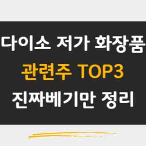 다이소 화장품TOP3로는 뭐가 있을까요? 라는걸 알고 싶다면 다이소에 실제로 화장품을 납품하는 회사가 어디인지, 이 회사가 성장하면 누가 이득을 보는지 알면 편합니다. 실제로 화장품이 품절주가 되면서 주가가 크게 오른 기업들도 존재하고, 이를 잘 캐치하면 좋은 수익을 볼 수 있겠습니다.