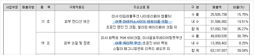 에이블씨엔씨는 회사명보다는 미샤라는 화장품 브랜드로 잘 알려져 있습니다. 제가 학생때만 하더라도 미샤가 꽤 유명했고, 고가 브랜드 짭으로 미샤를 잘 썼었죠. 이런 미샤가 어려움을 겪다가 다이소 입점으로 큰 성공을 거두면서 부활에 성공했다고 합니다. 부활 + 미국 수출 호조로 크게 성장하고 있습니다.