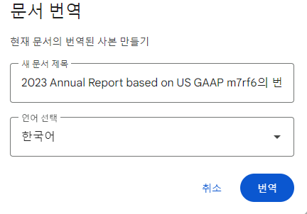이런 식으로 구글 드라이브의 문서를 이용하면 10MB이상의 PDF파일로 쉽게 번역이 가능함. 단 번역의 질은 매우 떨어져서 자세히 봐야 볼 수 있을 정도의 수준임. 구글의 번역 수준은 좀.. 안타까움. 미국 기업 리포트는 일상 영어와 다른 표현들이 많아서 질이 떨어질 수 있음. 질이 좀 떨어진다 싶은게 GPT번역임.