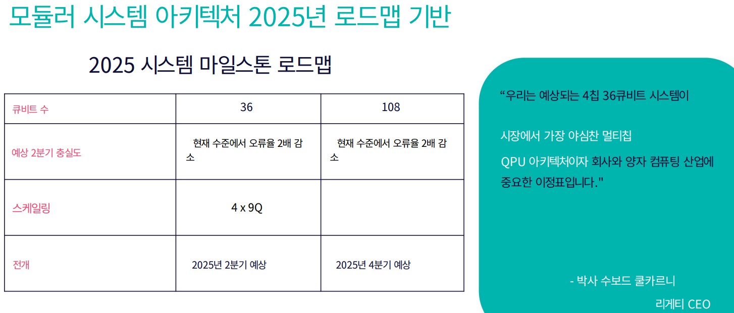 제가 올려드린 리게티컴퓨터 투자자 설명서를 보면 위와 같이 되어 있어요. 2025년 2분기, 4분기 계획이 담겨 있어요.
