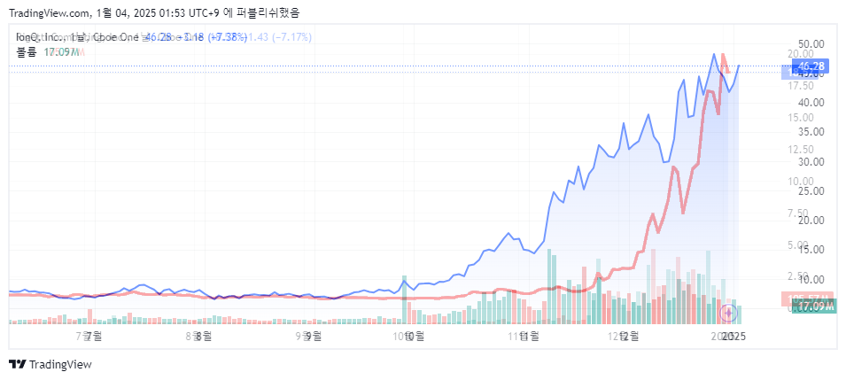 ✅투자자들에게 더 많은 인정을 받고 있는 기업은 아이온큐입니다.