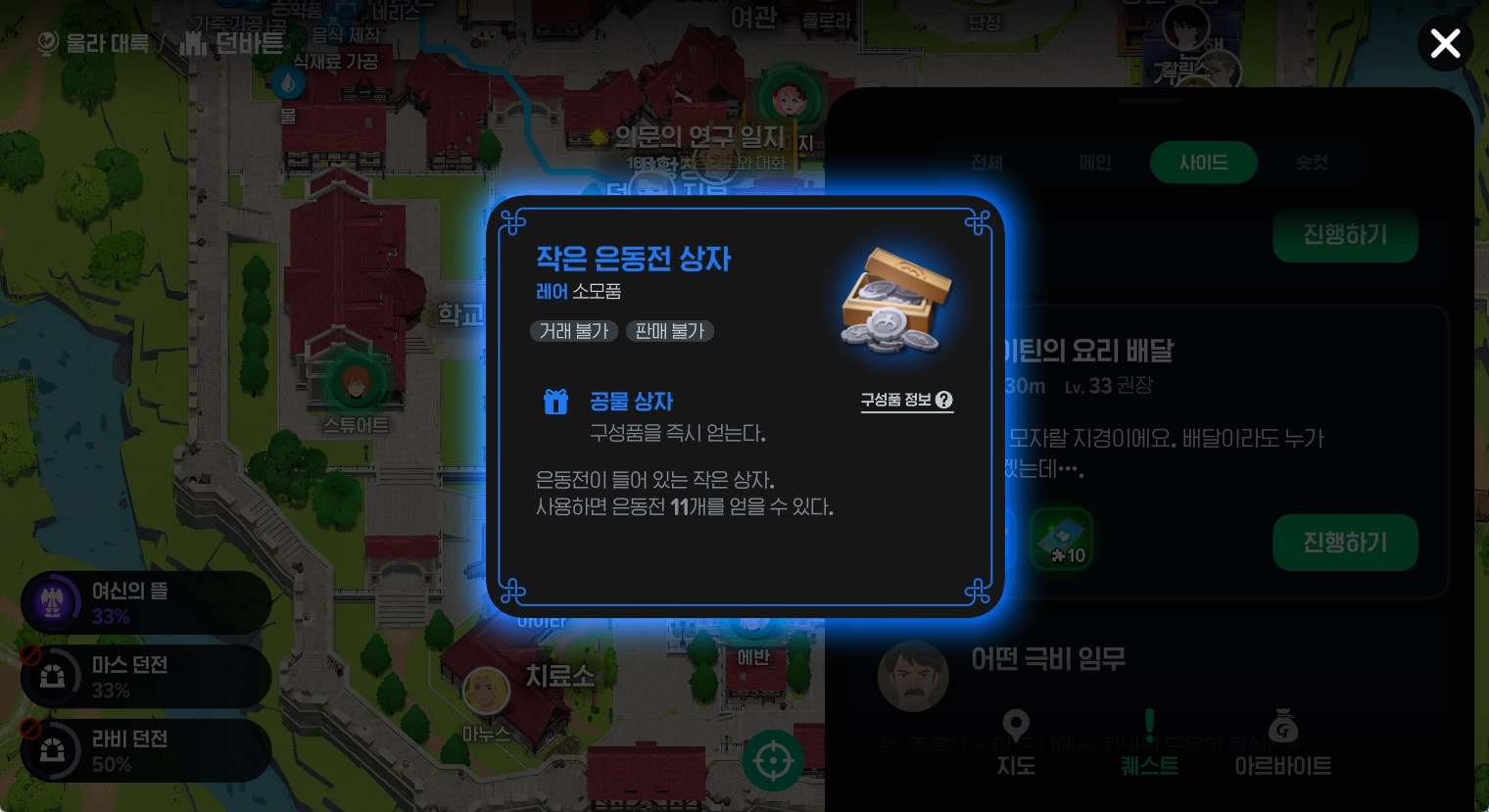게임 내 가장 안정적이고 꾸준한 은동전 수급처는 바로 데일리와 위클리 퀘스트입니다. 퀘스트 한두 개는 빠뜨려도 되겠지~ 싶다가 하루 500~1,000 은동전 손해 보는 건 순식간이에요.