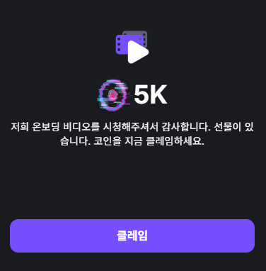 일단 게임 시작하면 뭐 동영상 하나를 보라고 하는데 보면 5천개의 코인 보상이 있다고 합니다. 이렇게 5천개 코인 보상을 받았으면 클레임 버튼을 누르세요. 그럼 끝납니다.