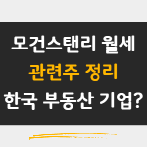 모건스탠리가 한국 월세시장에 참여한다고 합니다. 대기업들이 한국 월세시장에 뛰어들면 월세 시장의 질은 높아질 수 있겠지만 가격도 크게 오르겠죠. 앞으로 전세는 사라지고 월세가 득세하는 세상이 될 것 같네요. 어쨌든, 이 모건스탠리 관련주를 살펴보겠습니다.