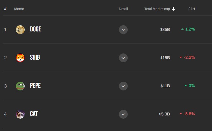인터넷 주소는 https://meme.com 이고 이곳은 밈 코인 양산소라기 보다는 거래소에 가까움. 도지, 시바, 캣, 페페 등 벼래별 코인들이 모두 거래되고 있음. 정상적인 코인거래소에 거래되지 못하는 밈코인들이 모두 여기에 모여있는데 한탕을 노리는 사람들이 여기서 돈을 거래하기도 함.