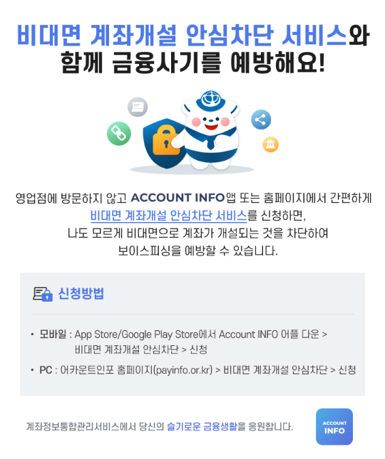 | 어카운트인포 공식 홈페이지 바로가기, 비대면계좌개설안심차단 신청 홈페이지(https://www.payinfo.or.kr/payinfo.html) (2) | 2025.04.28 |