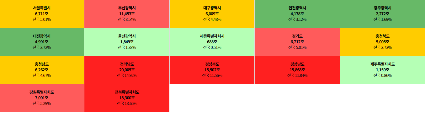 전국적으로 빈집 문제가 심각해지고 있고 특히 전라도, 경상도쪽은 뭐 거의 전멸이죠? 서울공화국 대한민국의 미래가 이렇답니다. 6.25전쟁으로 인해 남북이 절단났는데 남한은 남한대로 북쪽과 남쪽을 또 절단내고 있네요. 이재명이 대통령 되면 좀 바뀔까요? 무튼, 빈집정보 알고 싶은 분들은 이 글이 도움 되었으면 좋겠습니다. 안뇽.