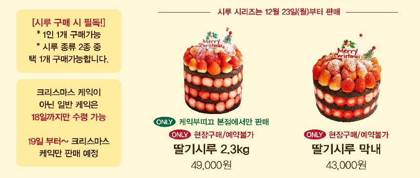 - 우리가 아는 딸기시루 크리스마스 케익은 예약 불가! 현장 구매만 가능!