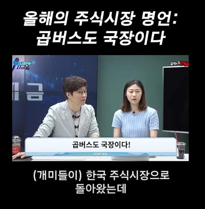 코스피 하락에 대한 이야기를 하다가 니니가 "곱버스도 국장이다" 라는 명언을 만들면서 엄청난 이슈를 탔습니다. '곱버스 = 인버스X2'인데 사실상 코스피가 떨어지는 것에 배팅 하는 것도 국장이라는 말을 하면서 시청자들에게 폭소를 주었습니다. 이후 한 정치인이 비슷한 멘트를 치는 바람에 더 유명해졌죠.