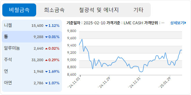 나라에서 제공하는 서비스니까 신뢰도가 매우 높고 광고도 없이 모두 무료로 볼 수 있는 곳입니다. 실시간 구리 가격만 볼 수 있는 게 아니라 실시간 리튬 가격, 실시간 알루미늄 가격 등도 볼 수 있다 이겁니다. 요즘 트럼프가 관세 때리겠다고 해서 알루미늄 가격이 불안정한데 여기서 보시면 됩니다.