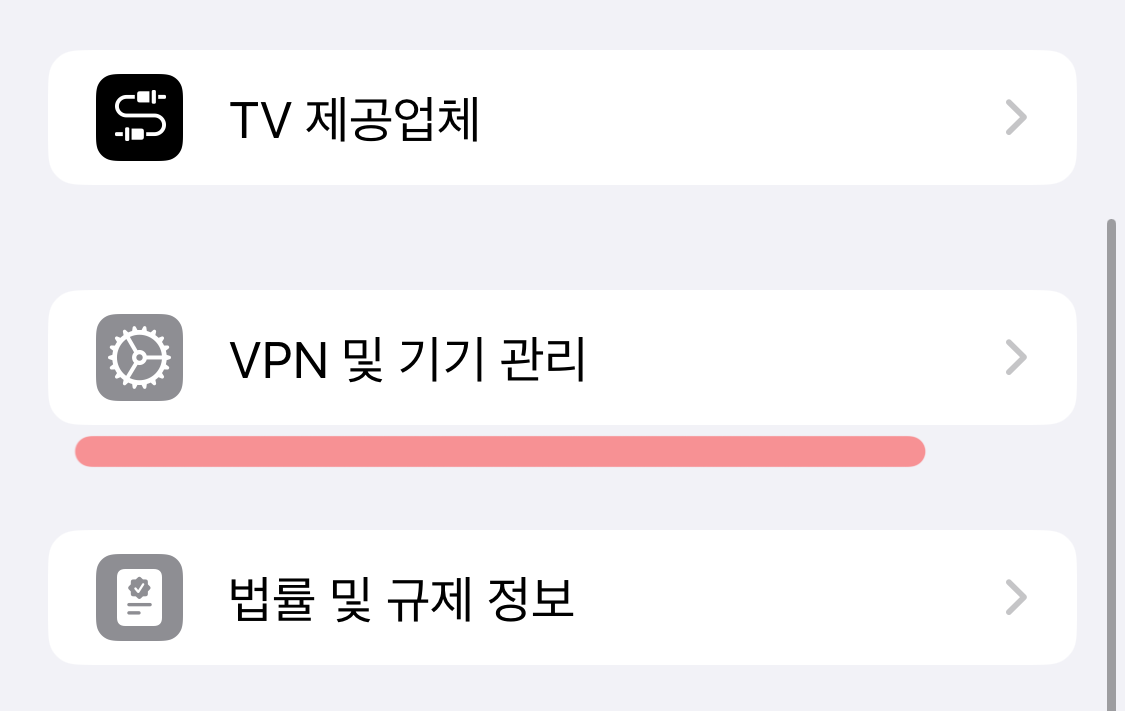 - [설정] → [일반] → [VPN 및 기기 관리]