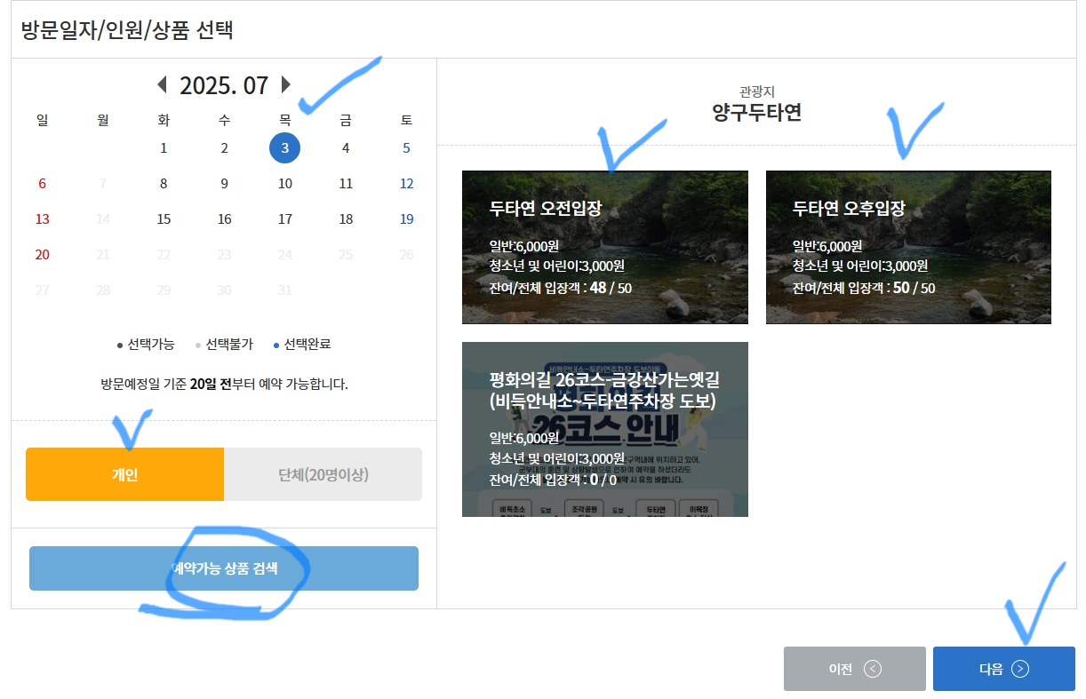 두타연 예약방법 STEP by STEP
