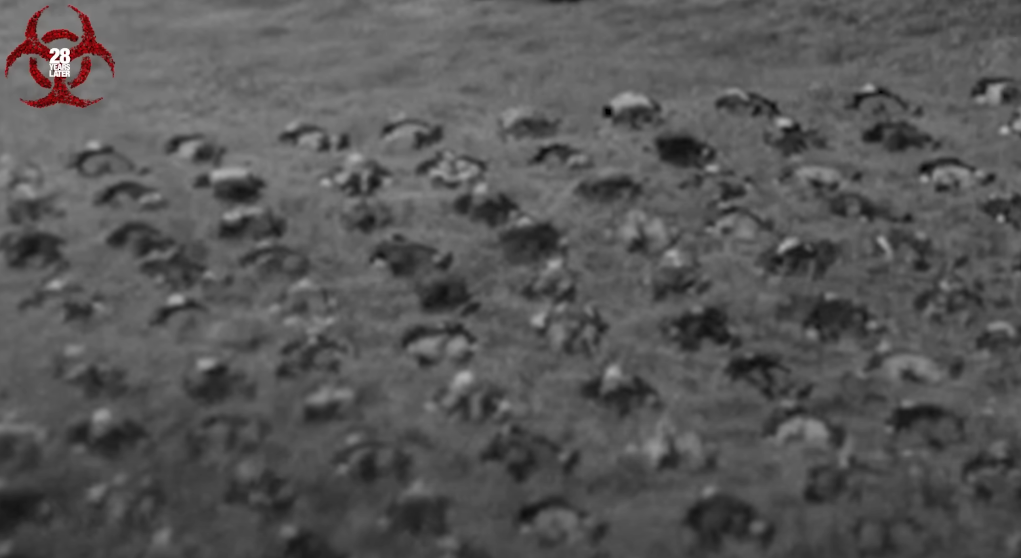 - 수백 구의 시체: 소각터와 그곳에 세워진 십자가는, 감염과 죽음이 일상화된 세계를 보여줍니다.