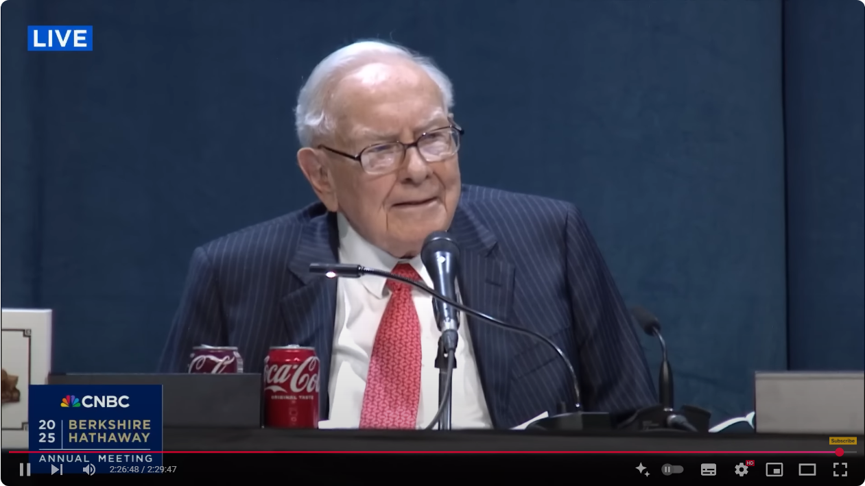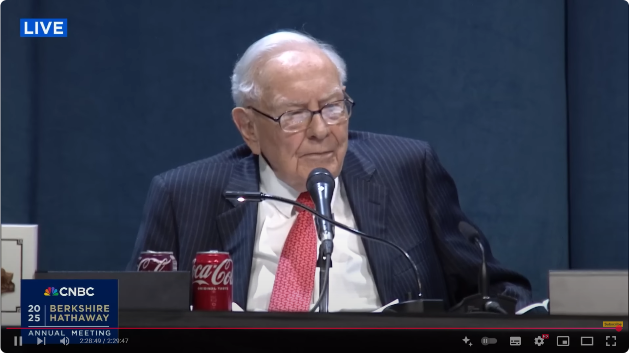 🚨 아래 영상에서 워렌 버핏의 은퇴 선언 영상 풀버전을 볼 수 있습니다. 버크셔헤서웨이 2025년 주주총회 풀버전이죠 ^^