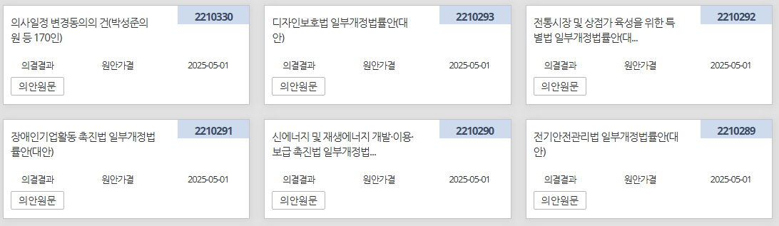 법안이 통과된 상태인지, 심사 중인지도 이곳에서 실시간으로 볼 수 있어요