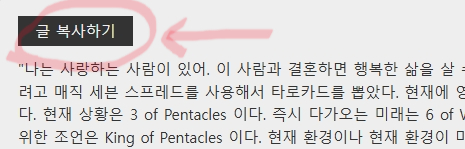 2. 완료를 누르면 타로카드의 결과가 나옵니다. 이 결과 오른쪽에 '글 보기'를 눌러주세요. 글 보기를 누르면 '글 복사하기' 버튼이 보입니다. 여기서 글을 복사해주세요.
