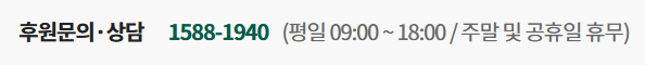 초록우산 어린이재단 고객센터 전화번호는 위와 같습니다. 문의할 것들이 있으면 초록우산 고객센터 전화번호 '1588-1940'으로 하면 되는데요, 제가 글을 작성한 이후 번호가 바뀌었을 수도 있고 제가 잘못된 정보를 착각했을 수도 있으니까 반드시 공식 홈페이지에 방문해서 고객센터 전화번호를 확인하세요. 일전에 잘못 알려드린 번호가 있기도 하더라고요 ㅠㅠ 저도 사람이다 보니..