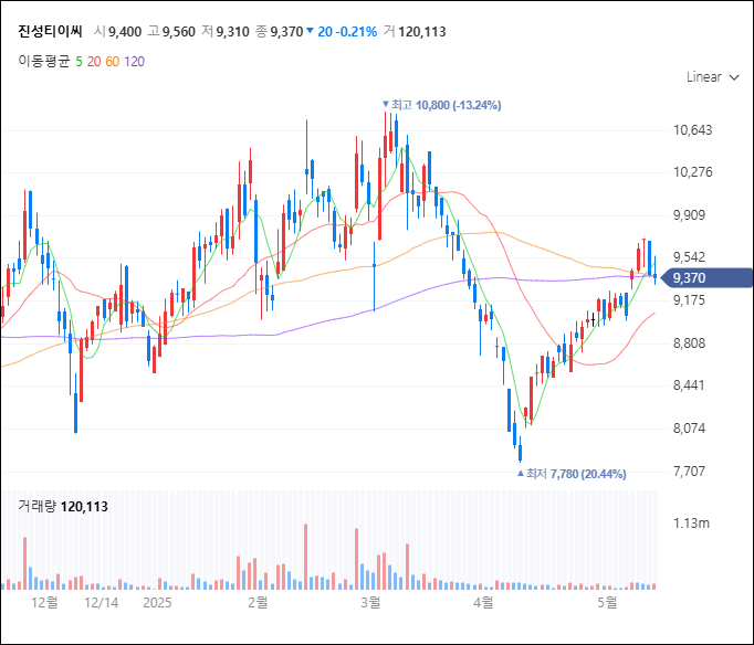 진성티이씨는 크롤러 및 중장비 하부구조 부품 제조업체로 알려져 있지만, 최근 극저온 플랜트 설비 부품까지 포트폴리오를 확대하고 있어요.