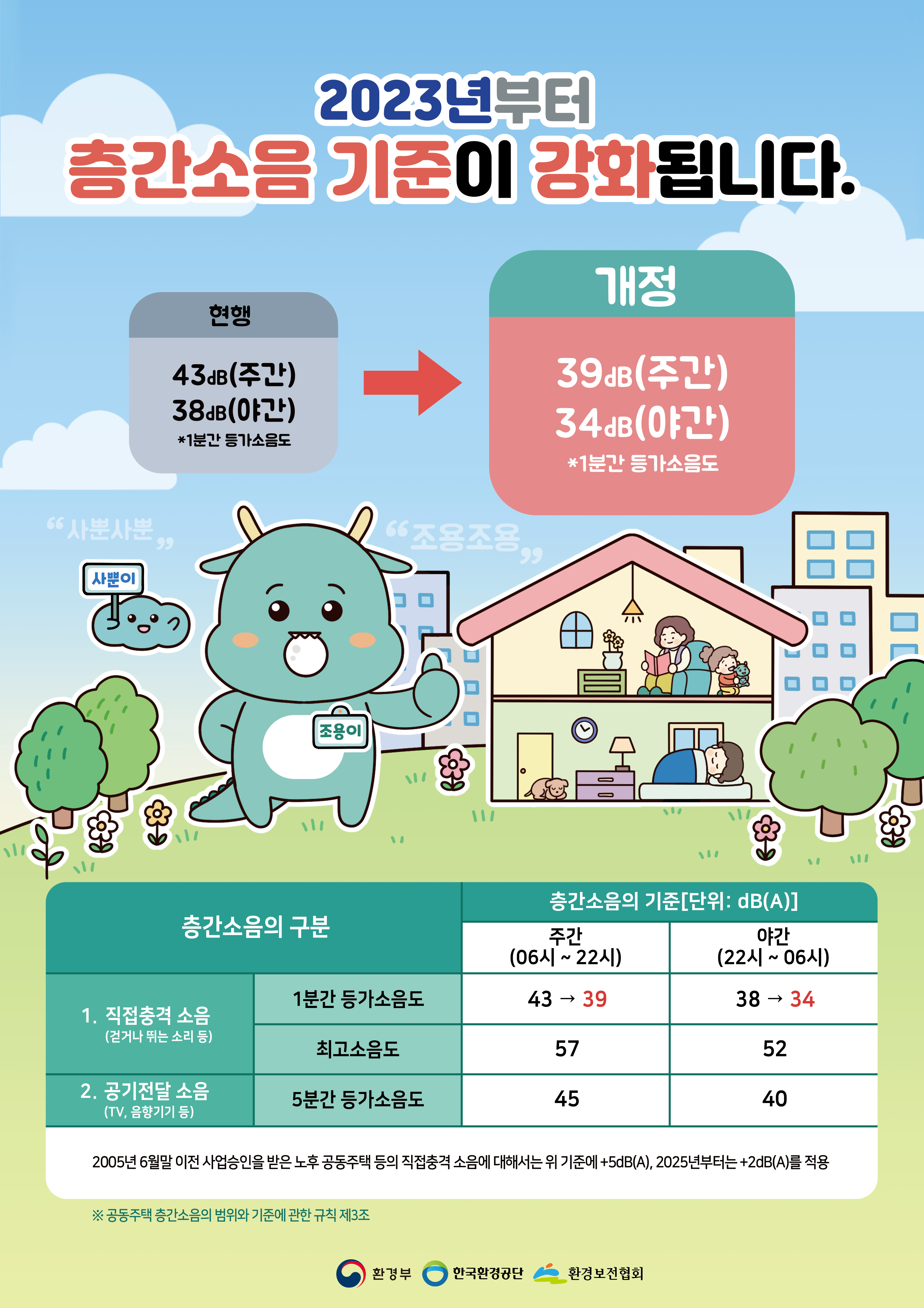 - 직접충격 소음과 공기전달 소음만 해당