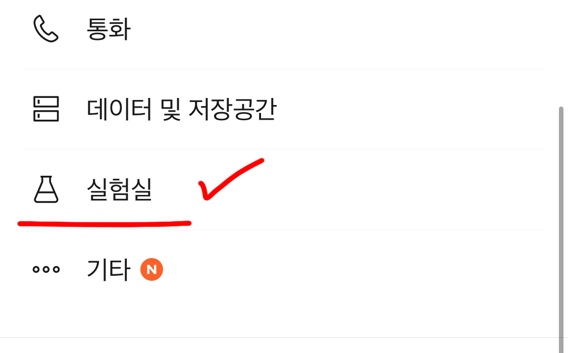 이 기능은 ‘설정’이 아닌, ‘실험실(Labs)’ 메뉴에서 설정해야 해요. 실험실은 말 그대로 카카오톡이 시험적으로 제공하는 기능들을 모아둔 공간이죠.