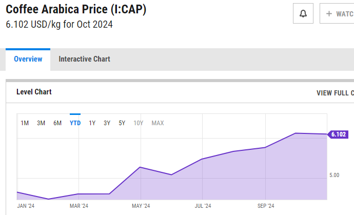 커피 원두가격이 미친듯이 오르고 있습니다. 근 10년 내 가장 높은 가격을 형성할 듯 합니다. 기후변화와 트럼프의 관세정책, 인플레이션 등으로 커피 원산지에서 가격이 오르고 있는거죠. 이런 원두 가격을 잘 알면 투자에도 이용할 수 있겠죠? 커피 원두 가격 보는 곳 4곳을 정리했습니다.