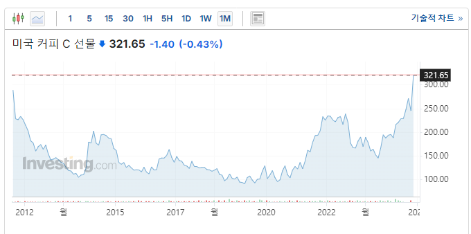 ✅ 커피 원두 가격 급등 관련주도 살펴보고 가세요.