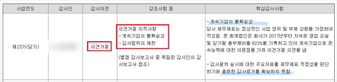 - 감사인 의견 미달