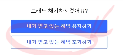 4. 해지하기를 누르면 뭐라 쌸라쌸라 하는데 맨 아래로 내려줍니다. 그러면 그래도 해지하시겠어요? 라는 말이 나오는데 '내가 받고 있는 혜택 포기하기 버튼을 눌러서 과감하게 해지를 해줍니다.