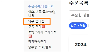2. 왼쪽 '와우 멤버십' 버튼으로 이동합니다.