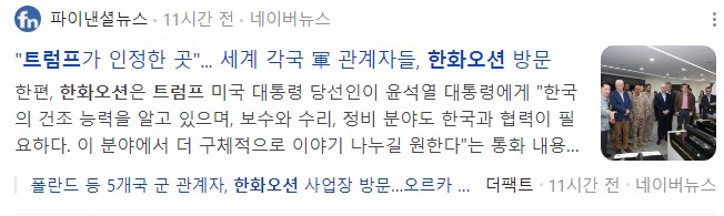 최근 트럼프가 인정한 곳이라며 해외 각국 국방 인사들이 모두 한국으로 몰려오는 중. 왜 그러냐? 유럽은 미국과 방산시스템을 공유하는데 만약 트럼프가 한국의 조선소를 선택해서 이용하기 시작하면 다른 곳들도 같은 곳을 이용할 가능성이 높음. 그래야 서로간의 호환성 문제도 해결되고 신뢰도도 높아지지 않겠음?