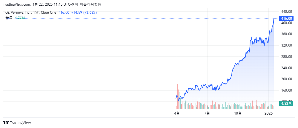 - GE Vernova(GEV): General Electirc에서 분사한 에너지 장비 및 서비스 기업으로, 재생에너지, 전력, 디지털 및 에너지 금융 서비스 부문 사업중