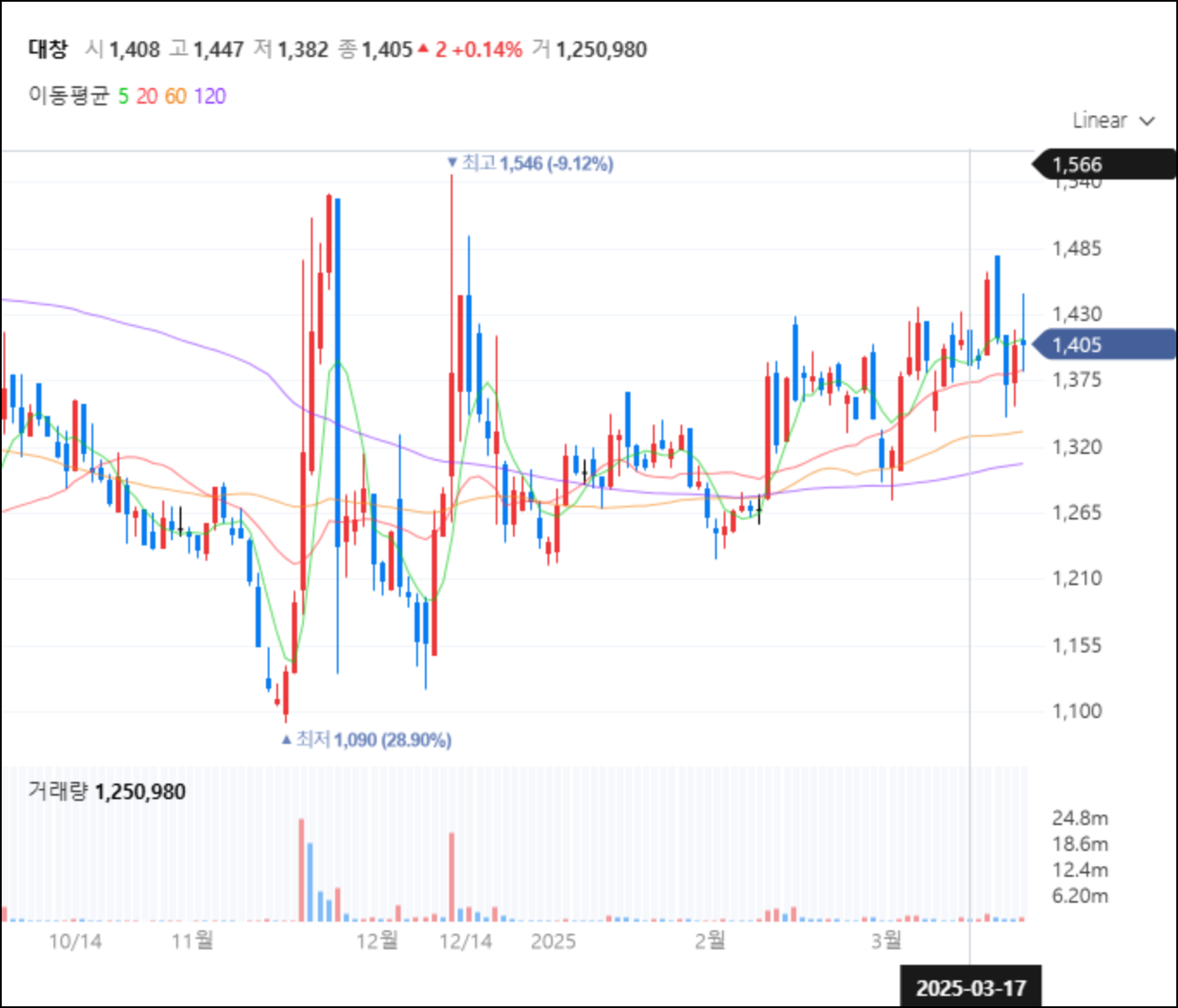 대창은 구리 및 동합금 제품을 제조하는 기업으로, 전기전자, 자동차, 건설 등 다양한 산업에 제품을 공급하고 있음. 구리 가격 상승은 대창의 제품 가격 인상으로 이어져 매출 및 수익성 개선에 긍정적인 영향을 미침. 또한, 해외 시장 진출 확대를 통해 글로벌 경쟁력을 강화하 있음.