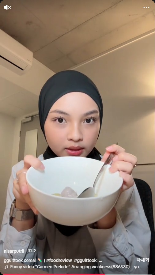 최근 꿀떡 시리얼이라는 이상한 레시피가 해외에서 유행이라고 합니다. 이 레시피를 유행시킨 사람은 틱톡에서 활동하고 있는 중동 사람인 Nisarputrii라는 사람인데요, 참 신기하죠? 중동 사람이 한국의 꿀떡을 안다니 말입니다. 이 사람은 어떤 사람인지 알아볼게요.